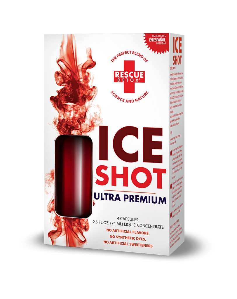 The Rescue Detox ICE Shot contains our instant ICE liquid in two forms; a concentrated shot and 4 capsules. Utilizing only all-natural ingredients, this product is perfect for customers that don’t want to drink a lot of fruit juice nor take 12 capsules. Conveniently sized for those that need to keep their detox handy.